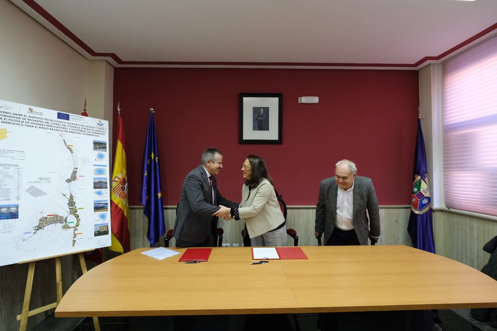 A este programa se une desde este martes la Comunidad de Regantes del Canal del Pisuerga después de que la consejera y el presidente de la entidad, Alberto Nebreda, hayan suscrito en un convenio para invertir 5,4 millones en la ejecución de una planta fotovoltaica para suministrar energía al sistema de riego de 12.000 hectáreas. Este proyecto permitirá que los 4.000 propietarios que integran la comunidad puedan regar sus parcelas de una forma sostenible y más eficiente.
