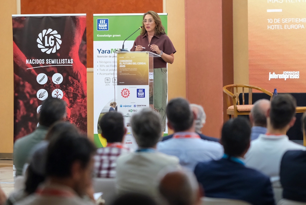 La consejera de Agricultura, Ganadería y Desarrollo Rural de la Junta de Castilla y León, María González Corral, aportó los datos definitivos de la cosecha de cereales en la clausura del Congreso El Futuro del Cereal, celebrado en Magaz de Pisuerga y organizado por Agropal y el Grupo Interempresas.
