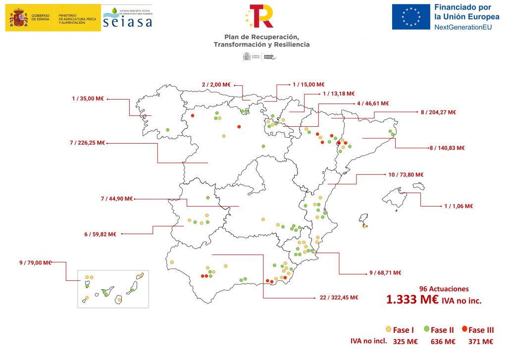 En el marco del Plan de Recuperación, Transformación y Resiliencia del Gobierno de España, están previstas un total de 96 actuaciones, con una inversión global de 1.333 millones de euros.